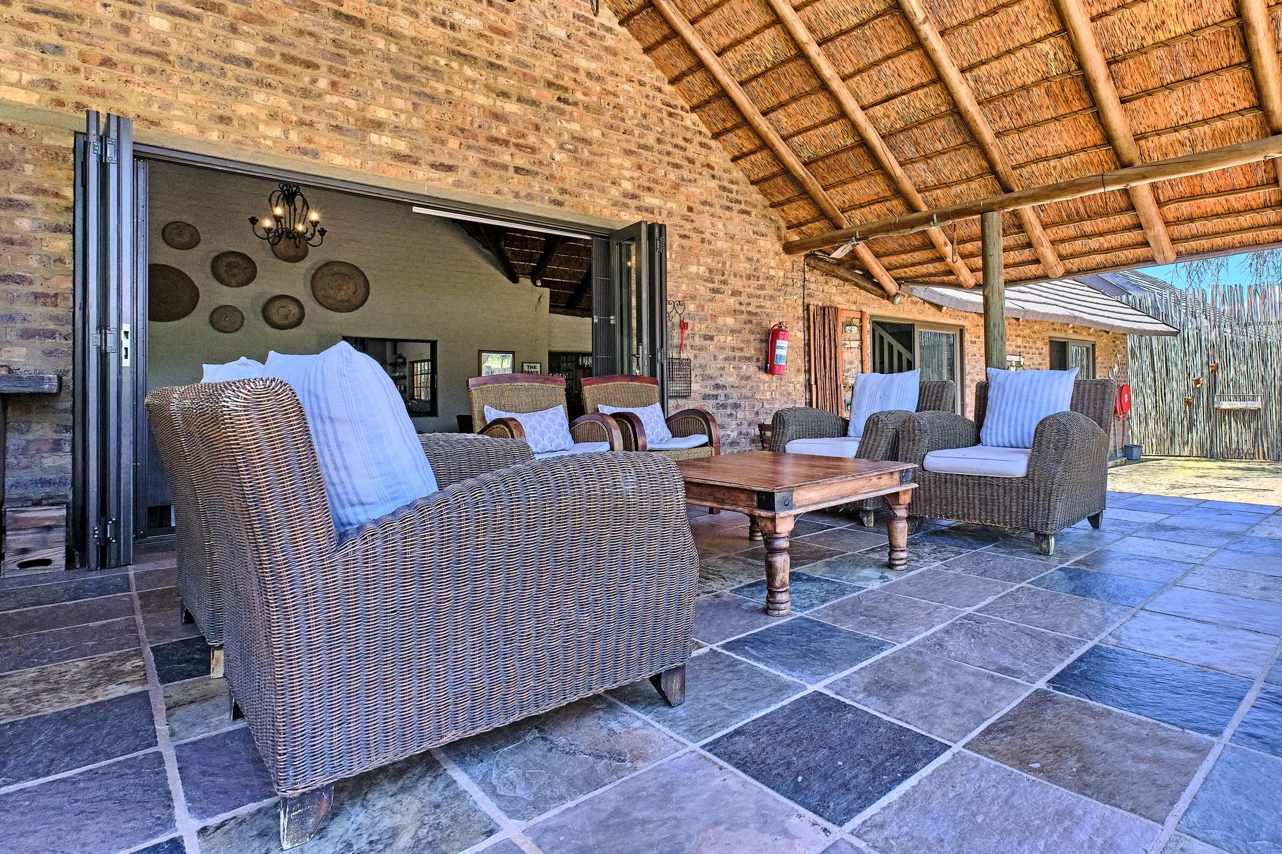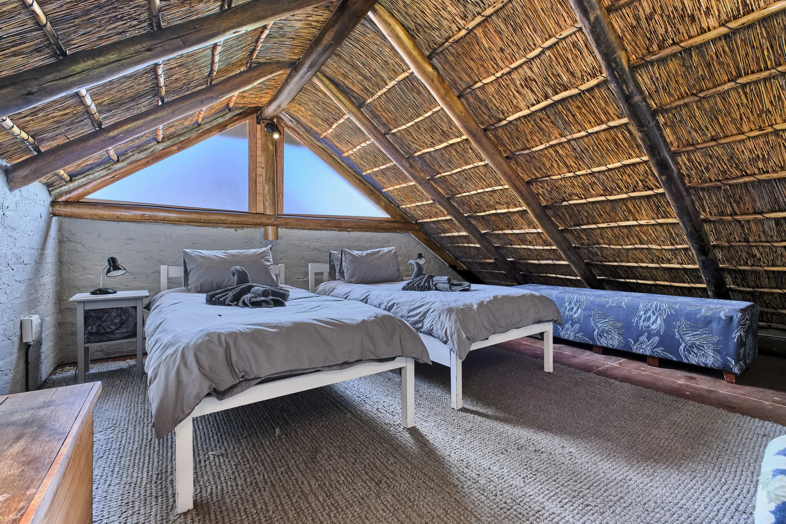 The Self-Catering House sleeps 10 people in 4 bedrooms. Two wings each comprising of a main bedroom, upstairs loft room and bathroom, separated by a large entertainment and dining area, make the house perfect for 2 families or a larger group.